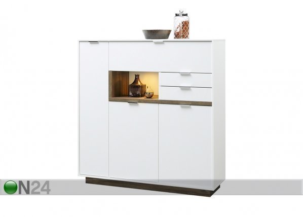Kalustelevystä valmistetussa lipastossa on kaksi laatikkoa ja neljä ovea – vasemmanpuolisen korkean oven… Lue lisää »