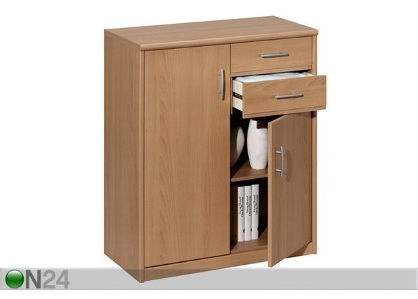 Fooliumpinnoitetusta kalustelevystä valmistetussa lipastossa on kaksi ovea ja kaksi laatikkoa – oven takana… Lue lisää »