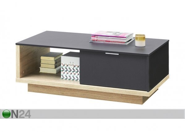 Sohvapöytä on valmistettu kalustelevystä – pöydän alla on metallikiskoilla liukuva laatikko – vedin… Lue lisää »