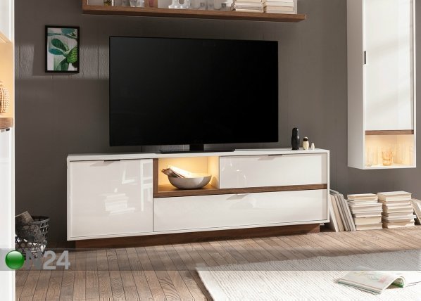Kalustelevystä valmistetussa tv-tasossa on yksi laatikko ja kaksi ovea – etupaneeleissa on korkeakiilto… Lue lisää »