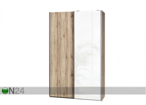 Liukuovinen vaatekaappi on valmistettu kalustelevystä – valkoisessa ovessa on korkeakiilto – ovien takana… Lue lisää »