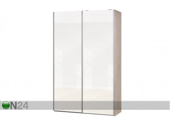 Liukuovinen vaatekaappi on valmistettu kalustelevystä – molemissa ovissa on korkeakiilto – ovien takana… Lue lisää »