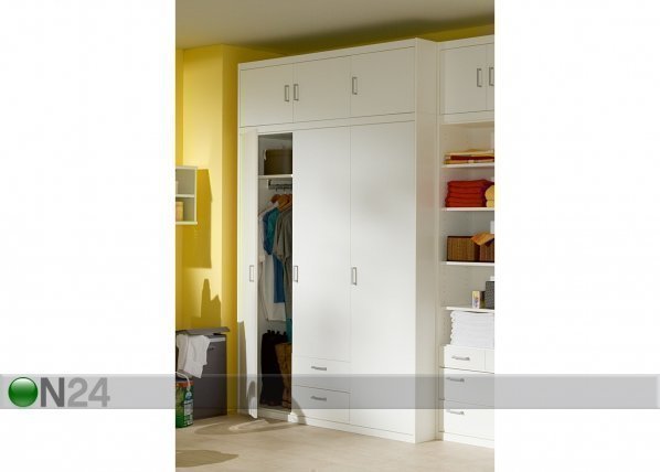 Vaatekaappi on valmistettu laadukkaasta fooliumpinnoitetusta kalustelevystä – koostuu kolmeovisesta vaatekaapista ja yläkomerosta -… Lue lisää »