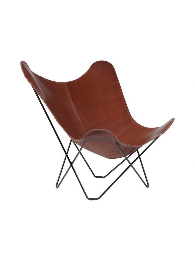 Klassinen lepakkotuoli henkii 50-luvun muotokieltä. Mustaan metallirunkoon kiinnitettävä istuinosa on laadukasta, argentiinalaista satulanahkaa. Tuolin leveys on 89 cm, korkeus 92 cm ja syvyys 84 cm.