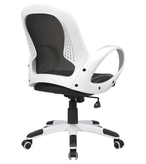 Dakota-työtuolissa on valkoinen muovirunko sekä musta istuinosa, joka on verkkokangasta & polyuretaania. Alla pyörät. Säädettävä istuinkorkeus. Tilaa nyt!