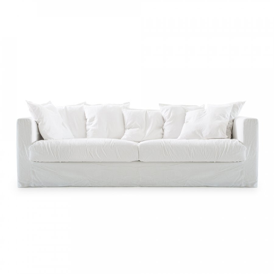 Päällisen voi pestä käsin 30 asteessa. Sohvan mukana tulee 7 tyynyä. Materiaali: 44% puuvillaa, 37% viskoosia, 19% pellavaa. Verhoilu toimitetaan erillisessä pakkauksessa.
