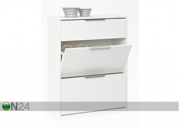 Jalkinekaapissa on kaksi osiota ja yksi laatikkoa – laatikko liukuu metallikiskoilla – valmistettu… Lue lisää »