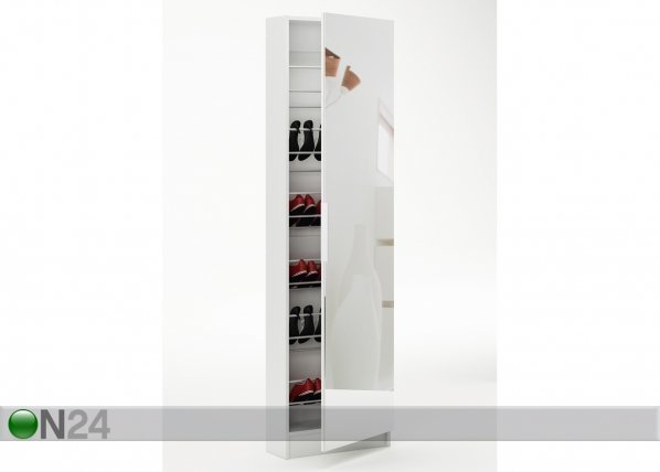 Peiliovinen jalkinekaappi – valmistettu fooliumpinnoitetusta kalustelevystä, viimeistely: valkoinen – kaapissa on kuusi osaa,… Lue lisää »
