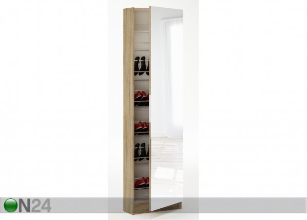 Peiliovinen jalkinekaappi – valmistettu fooliumpinnoitetusta kalustelevystä, viimeistely: struktuuri tammi/valkoinen – kaapissa on kuusi… Lue lisää »