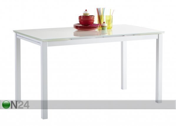 Jatkettavan ruokapöydän runko on valmistettu metallista, viimeistelty valkoisella maalilla – pöydän kansi on… Lue lisää »