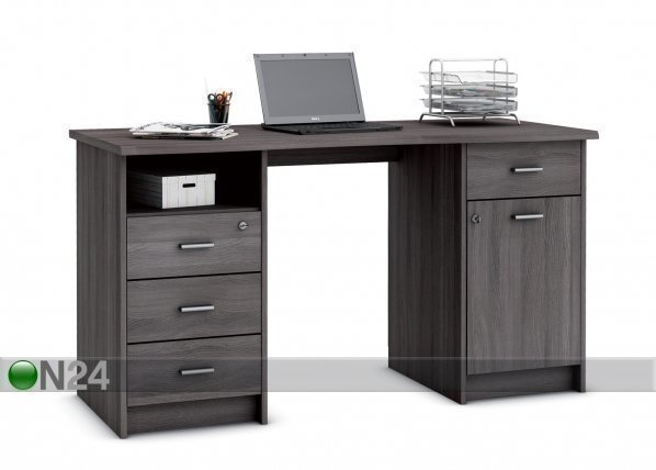 Kirjoituspöydän vasemmalla puolella on kolme metallikiskoilla liukuvaa laatikkoa ja pieni hyllyosa – ylin… Lue lisää »