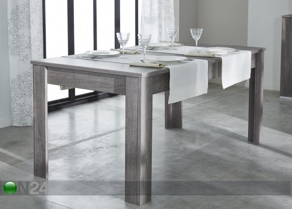 Ruokapöytä on valmistettu 22 mm paksusta fooliumpinnoitetusta kalustelevystä – viimeistely: Prata tammi… Lue lisää »