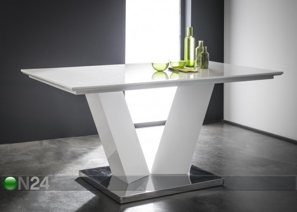 Ruokapöydässä on V-mallinen jalka, valmistettu MDF-levystä – viimeistely: valkoinen korkeakiilto – pöytätason alla… Lue lisää »
