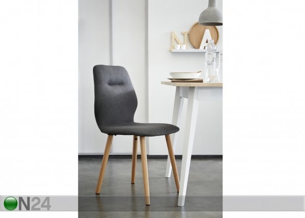 Tuoli on verhoiltu harmaalla kankaalla – jalat ovat puusta (pyökki) – päällinen ei… Lue lisää »