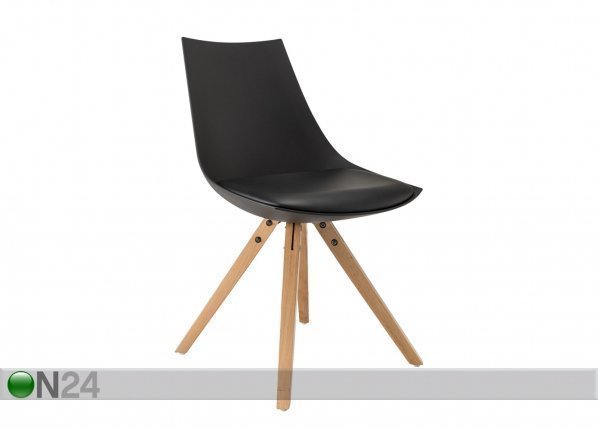 Tuoli on valmistettu mustasta muovista, istuin mustaa keinonahkaa – jalat ovat puuta -… Lue lisää »