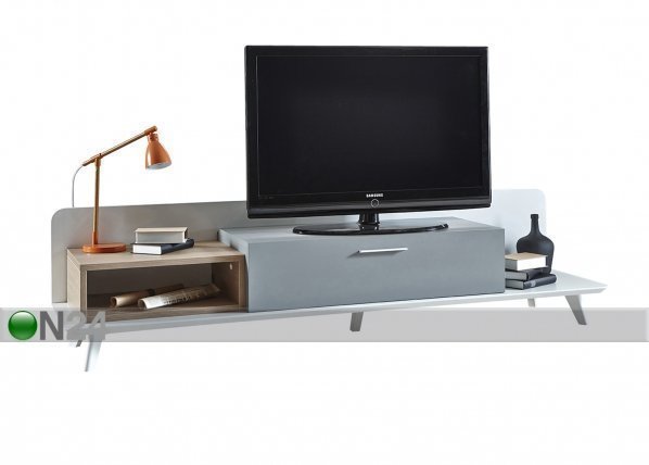 Tv-taso on valmistettu melamiinipinnoitetusta kalustelevystä – viimeistely: Aragon tammi/valkoinen/helmiäisharmaa/makadamia – vedin ja laatikoiden… Lue lisää »