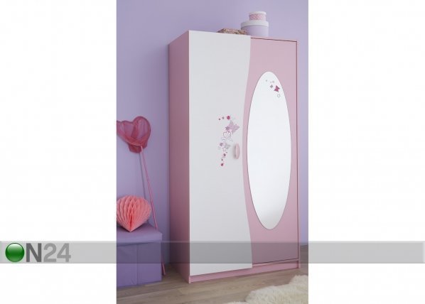 Roosa-valkoinen kaksiovinen vaatekaappi on valmistettu 15 mm fooliumpinnoitetusta kalustelevystä – peilioven takana on… Lue lisää »