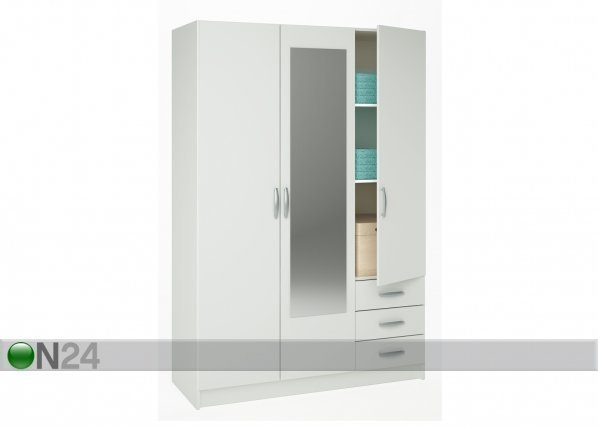 Vaatekaappi on valmistettu fooliumpinnoitetusta kalustelevystä – peilioven ja vasemman oven takana on yksi… Lue lisää »