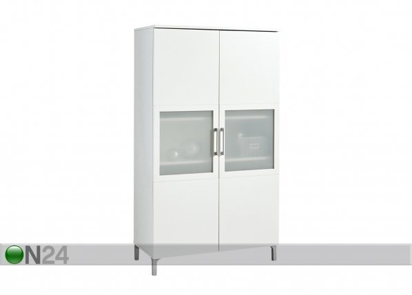 Kaappi/lipasto on valmistettu kalustelevystä, helmenvalkoinen viimeistely – ovien sisällä on osittain läpinäkyvät lasipaneelit… Lue lisää »