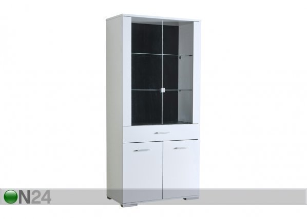 Vitriinikaappi on valmistettu 15mm ja 18mm kalustelevystä – viimeistely: helmenvalkoinen/valkoinen korkeakiilto – kaksi… Lue lisää »