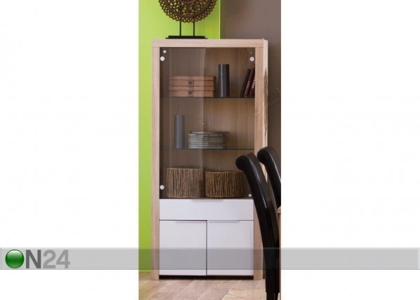 Vitriinikaappi on valmistettu 15 mm paksusta fooliumpinnoitetusta kalustelevystä – viimeistely: struktuuri tammi /… Lue lisää »