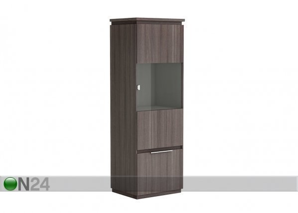 Vitriinikaapissa on yksi lasiovi ja yksi kalustelevyovi – valmistettu kalustelevystä – vetimet ovat… Lue lisää »