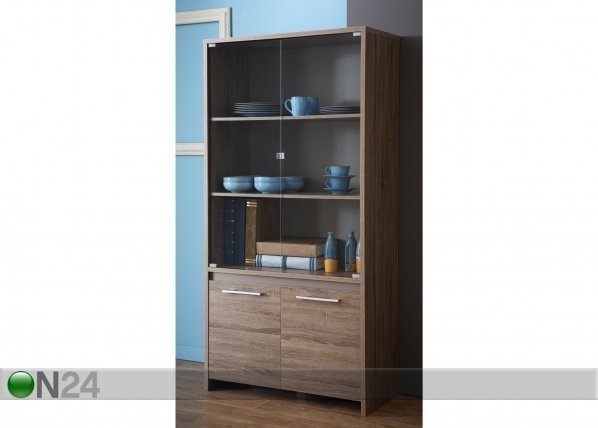 Vitriinikaappi on valmistettu 15 mm ja 22 mm fooliumpinnoitetusta kalustelevystä – viimeistely: tumma… Lue lisää »
