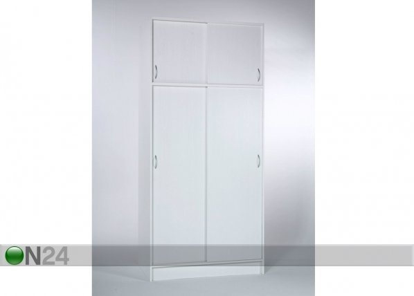 Laadukkaasta kalustelevystä valmistetussa vaatekaapissa on valkoinen struktuuri melamiinipinnoite – kaapissa on neljä liukuovea… Lue lisää »