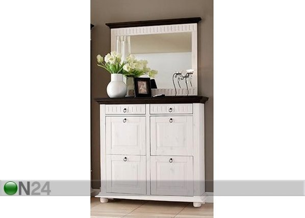 Jalkinekaappi on valmistettu männystä – valkoinen vahaviimeistely, pähkinän sävyinen karniisi – puun syyt… Lue lisää »