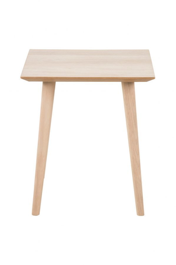 Pikkupöytä. Valkopigmentoitua tammiviilua. 50 x 50 cm, korkeus 55 cm. Toimitetaan osina.