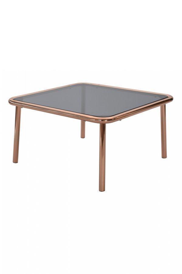 Pöytälevy savunväristä 8 mm lasia. Runko ja jalat kuparipinnoitettua metalliputkea. Mitat: Leveys 75 cm, syvyys 75 cm, korkeus 40 cm. Toimitetaan osina. Rahtipaino 21 Kg. Tarkista rahtimaksu Toimitus-välilehdeltä.