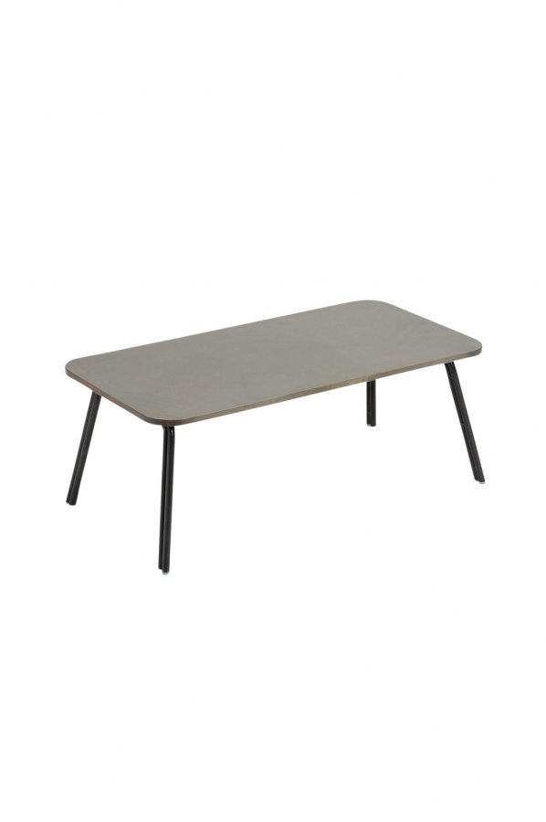 Sohvapöytä, jonka runko jauhemaalattua, sinkkipinnoitettua terästä. Pöytälevy Superstone-polysementtiä. Korkeus: 41 cm Leveys: 110 cm Syvyys: 55 cm Paino: 15,6 kg