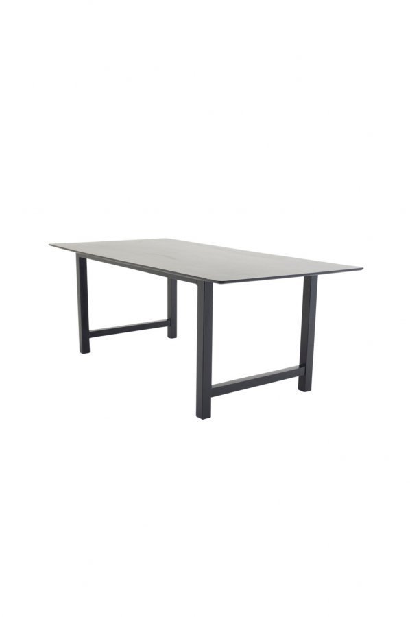 Klassinen ruokapöytä, jossa pöytälevy MDF-levyä ja maalatut metallijalat. Mitat: Pituus: 220 cm Leveys: 100 cm Korkeus: 75 cm Jalkojen välinen etäisyys: 185 cm. Toimitetaan osina.