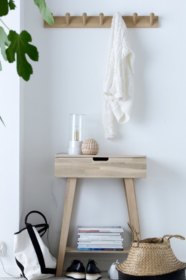 Lipasto/yöpöytä käsittelemätöntä tammea. Vetolaatikko, jossa pysäytin. Korkeus 80 cm. Syvyys 30 cm. Leveys 60 cm. Toimitetaan osina.