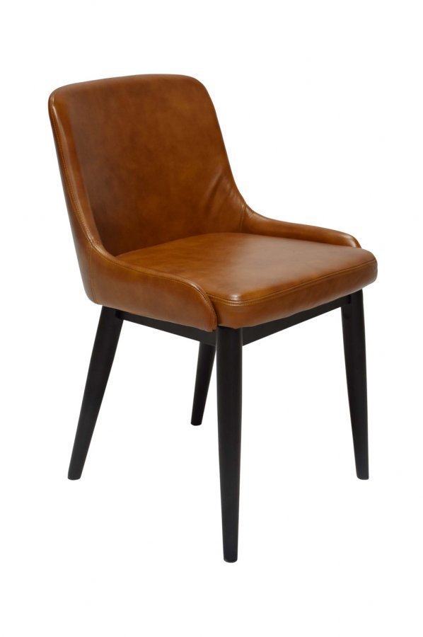 Modernien tuolien istuin taivutettua puuta ja nahkaa. Jalat mustaksi petsattua kumipuuta. Mitat leveys 51 cm, syvyys 57 cm, korkeus 80 cm. Istuinsyvyys 44 cm, istuinkorkeus 48 cm. Toimitetaan osina.