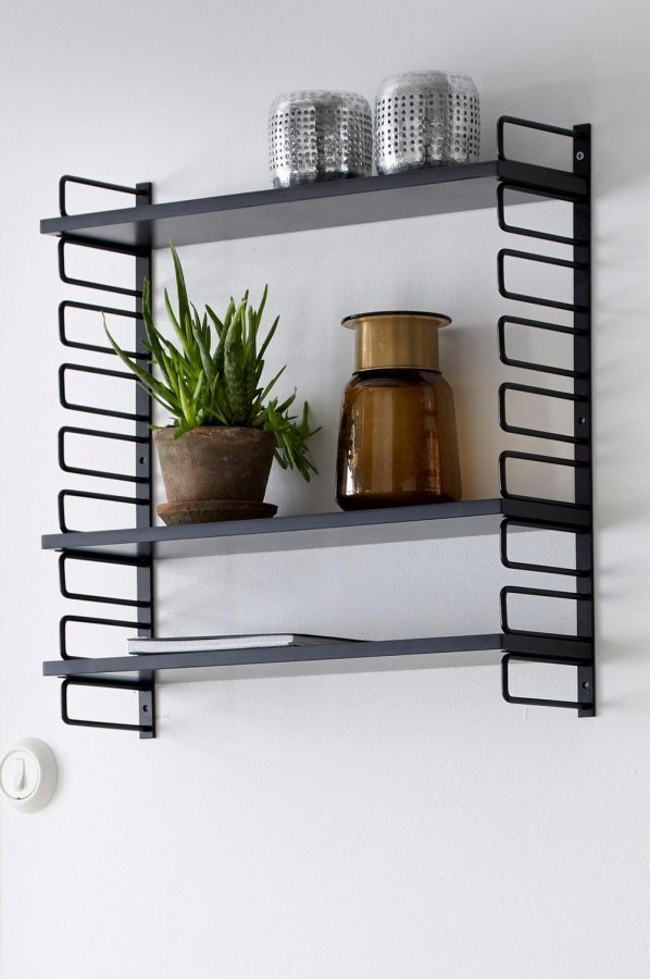 Maalattua terästä. 3 hyllytasoa maalattua MDF-levyä. N. 60x16x58 cm. Toimitetaan osina.
