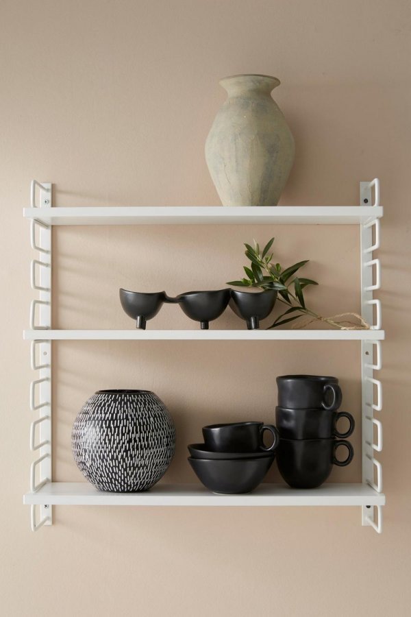 Maalattua terästä. 3 hyllytasoa maalattua MDF-levyä. N. 60x16x58 cm. Toimitetaan osina.