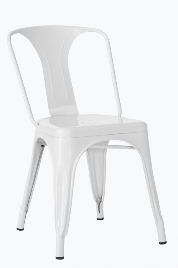 Maalatut metallituolit, joissa teollishenkinen look. Korkeus 77 cm. Leveys 43 cm. Istuinsyvyys 35 cm. Istuinkorkeus 45 cm. Selkänojan korkeus 36 cm. Toimitetaan koottuna.