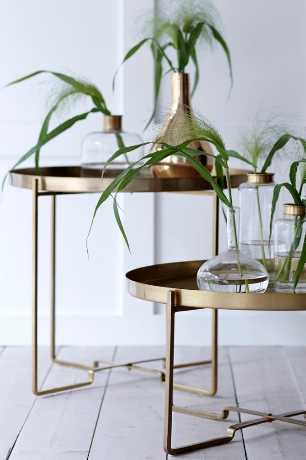 Sohvapöytä, jossa irrotettava tarjotin. Kokoontaittuva jalusta. Metallia. ø 57 cm. K 48 cm.