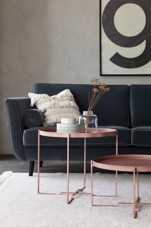 Sohvapöytä, jossa irrotettava tarjotin. Kokoontaittuva jalusta. Metallia. ø 57 cm. K 48 cm.