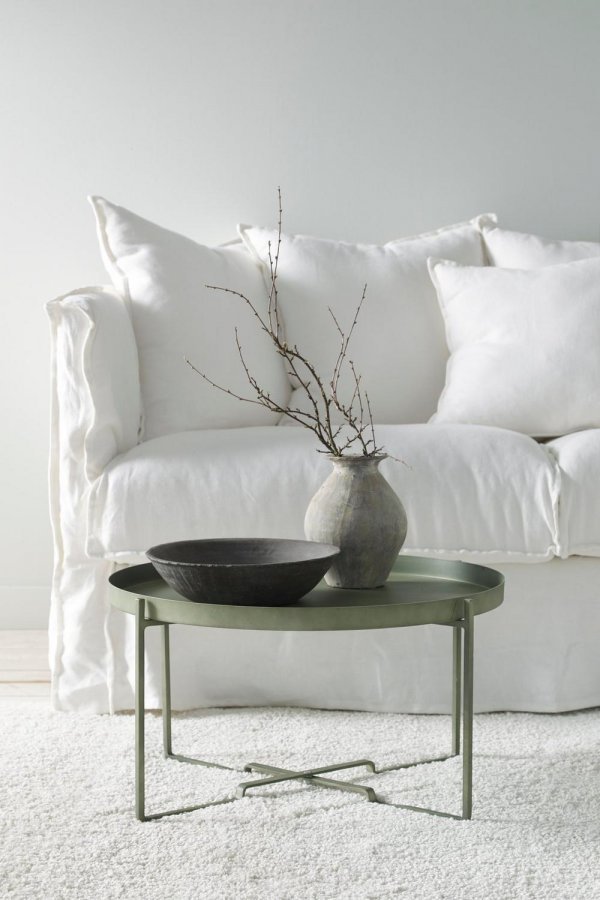Sohvapöytä, jossa irrotettava tarjotin. Kokoontaittuva jalusta. Metallia. ø 57 cm. Korkeus 31 cm.