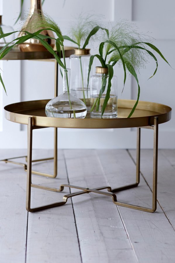 Sohvapöytä, jossa irrotettava tarjotin. Kokoontaittuva jalusta. Metallia. ø 57 cm. Korkeus 31 cm.