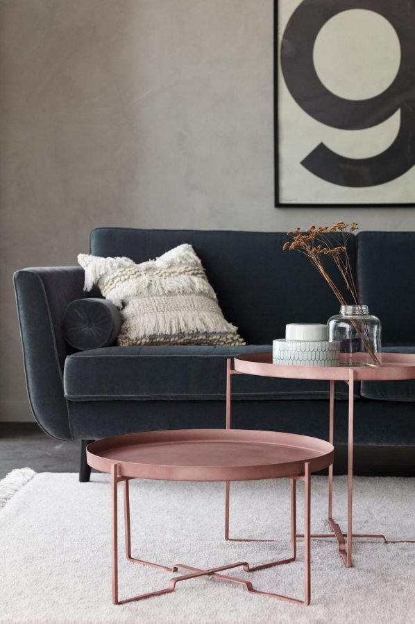 Sohvapöytä, jossa irrotettava tarjotin. Kokoontaittuva jalusta. Metallia. ø 57 cm. Korkeus 31 cm.