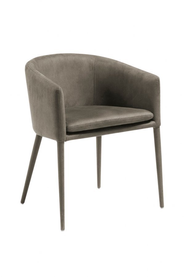 Käsinojallinen tuoli pehmustettua Eco Nobuck -nupukkia. Teräsjalat, jotka on päällystetty samalla materiaalilla. 2/pakk. Korkeus: 74 cm Leveys: 59 cm Syvyys: 58 cm