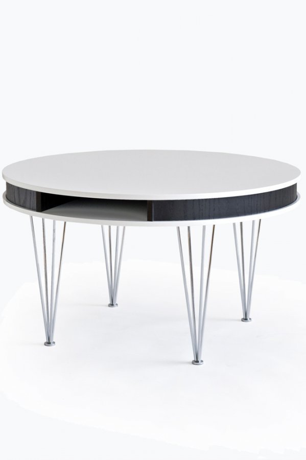 Hugo-sohvapöydässä on kaksi valkoiseksi maalattua MDF-levyä, joiden välissä säilytyslokero ja viilutettu lista. Mitat: halkaisija 90 cm, korkeus 51 cm. Rahtipaino 34 kg. Tarkista rahtimaksu Toimitus-välilehdeltä.