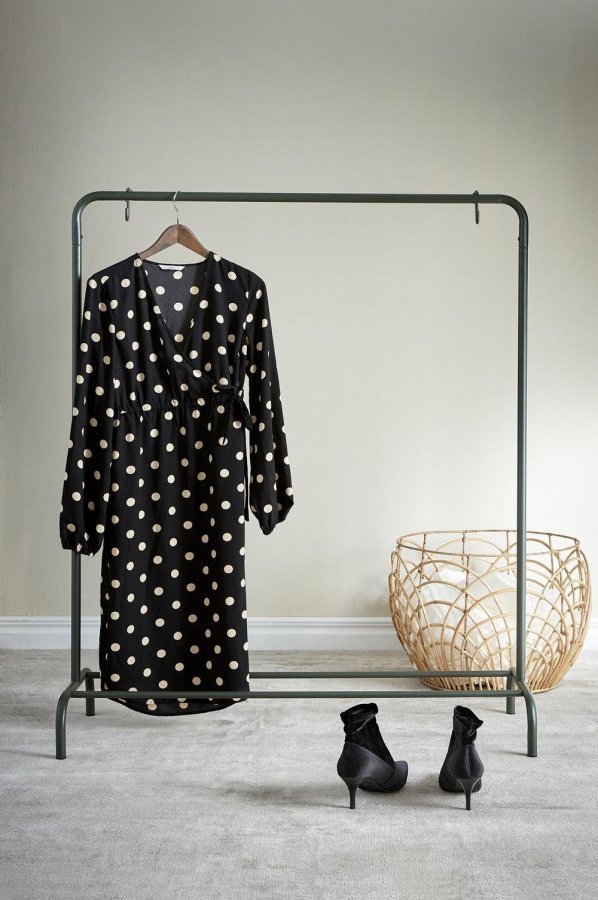 Maalattua metallia. 2 koukkua. Korkeus 131 cm, leveys 110 cm, syvyys 40 cm. Toimitetaan osina. Enimmäiskuormitus 8 kg.