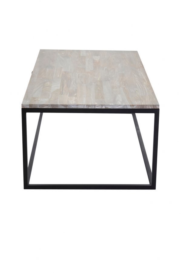 Jaen-sohvapöytä on tyyliltään rustiikki, ja sen pöytälevy on harmaaksi petsattua tiikkiä. Jalusta mustaa, jauhemaalattua terästä. Mitat: Pituus: 120 cm Leveys: 60 cm Korkeus: 45 cm. Toimitetaan osina.