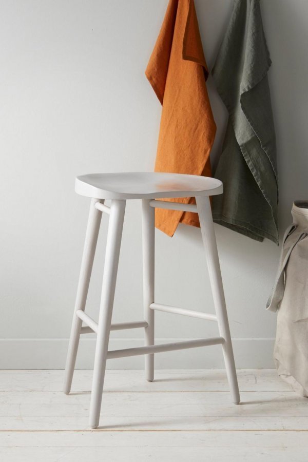 Jakkara, jossa mukava muotoiltu istuin. Massiivipuuta. Korkeus 61 cm. Istuin 40×32 cm. Leveys alhaalla 47 cm. Toimitetaan koottuna.