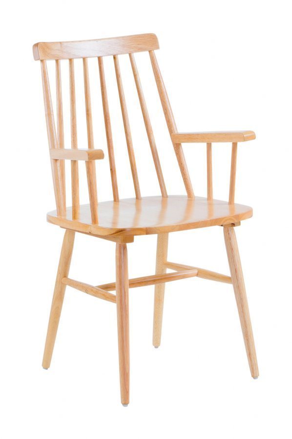 Käsinojallinen tuoli luonnonväristä kumipuuta. Korkeus 87 cm Leveys 53 cm Syvyys 51 cm