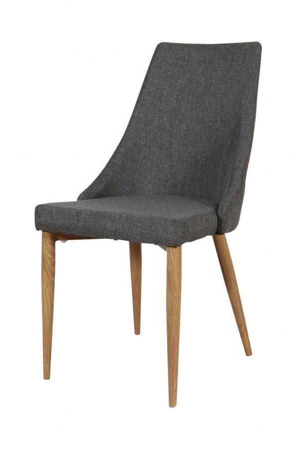 Moderni ja miellyttävä ruokapöydän tuoli. Vakaat tuolit, joissa tammea muistuttavat metallijalat. Korkeus: 91 cm, syvyys: 59 cm, istuinkorkeus: 48 cm, istuinsyvyys: 44 cm, leveys: 45
